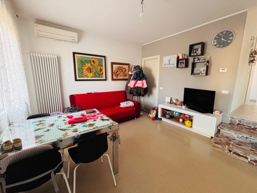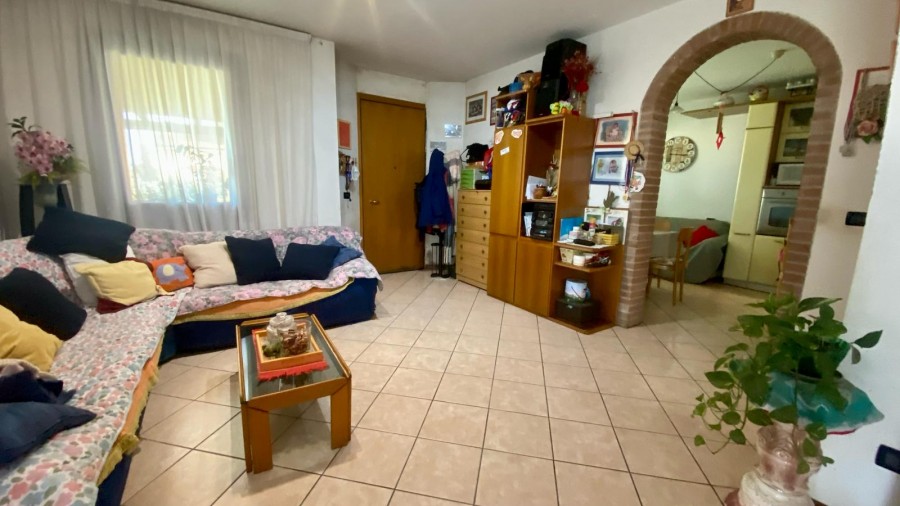 CASALE DI SCODOSIA: Appartamento piano primo, composto da: ingresso, soggiorno/angolo cottura, disimpegno, camera matrimoniale, camera singola, bagno con doccia, ripostiglio/lavanderia, terrazza coperta e garage. €. 45.000,00